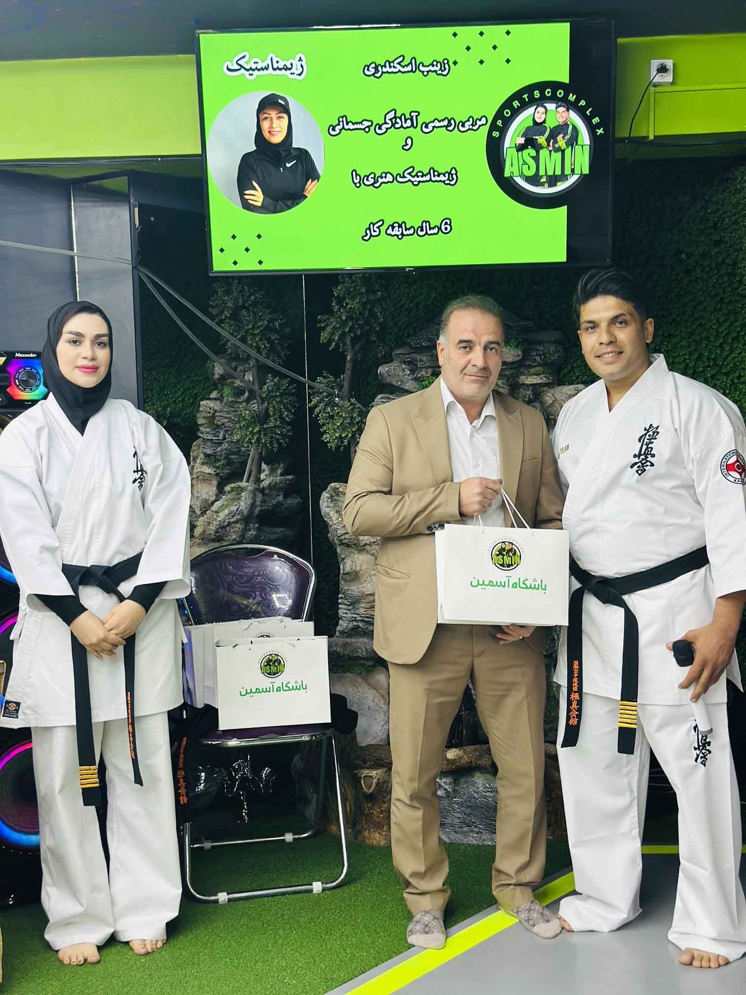 شیهان حسین ابراهیمی از سال ۱۳۷۷رشته ی کاراته رو شروع کردند و بیش از ۱۵دوره قهرمانی در مسابقات کشوری،استانی در آلبوم افتخاراتشان ثبت کردند و در سال ۱۳۹۱ بعنوان جوانترین مربی کشور معرفی شدند که در همان سال توسط پدر کاراته ایران( هانشی حسین لطیفی )مفتخر به دریافت کمربند مشکی دان ۴ گردیدند .ایشون در حال حاضر نماینده جنوب شرق استان تهران در سبک پر افتخار و قدرتمند ماتسوشیما هستند.شیهان حسین ابراهیمی با مدارک معتبر مربیگری درجه یک ملی کاراته جمهوری اسلامی ایران ، B آسیا،مربیگری فیزیکال فیتنس،کارشناس تغذیه با مدرک جهانی تغذیه و داور رسمی فدراسیون جمهوری اسلامی یکی از موفقترین مربیان جوان حال حاضر کشور که توانسته با پشتکار قهرمانان بسیاری را در تمام رده های سنی تربیت کند.شیهان یاسمن مصطفی لو همسر شیهان حسین ابراهیمی قهرمان کشور،قهرمان استان تهران و مربی کاراته با مدرک درجه دو ملی کاراته و فیزیکال فیتنس و تی آرایکس و داور رسمی فدراسیون کاراته و مشاور تغذیه با مدرک جهانی تغذیه و مسئول سبکهای آزاد کاراته پاکدشت و نماینده استان تهران با تربیت شاگردانی زبده توانسته قهرمانیهای بسیاری در سطح کشور،بین المللی و آسیایی در کارنامه ی خود و هنرجویانش ثبت کند.در حال حاضر زوج قهرمان و قهرمان پرور پاکدشتی در مجموعه ورزشی مجهز آسمین که با تخصص خودشون تأسیس کردند به جامعه ی ورزشی در رشته های ورزشی مختلف با حضور مربیان باتجربه خدمت رسانی میکنند.در ادامه ی این مراسم با شکوه، شیهان حسین ابراهیمی از جهان پهلوان علی تکلو بخاطر خدمت رسانی خیر خواهانه در خصوص آزادی زندانیان و کمک رسانی به کودکان و خانواده های بی سرپرست تقدیر و تشکر کرد و هدایایی به رسم یادبود از طرف مدیریت مجموعه ورزشی آسمین(زوج جوان) به مسئولین و میهمانان گرامی تقدیم گردید.